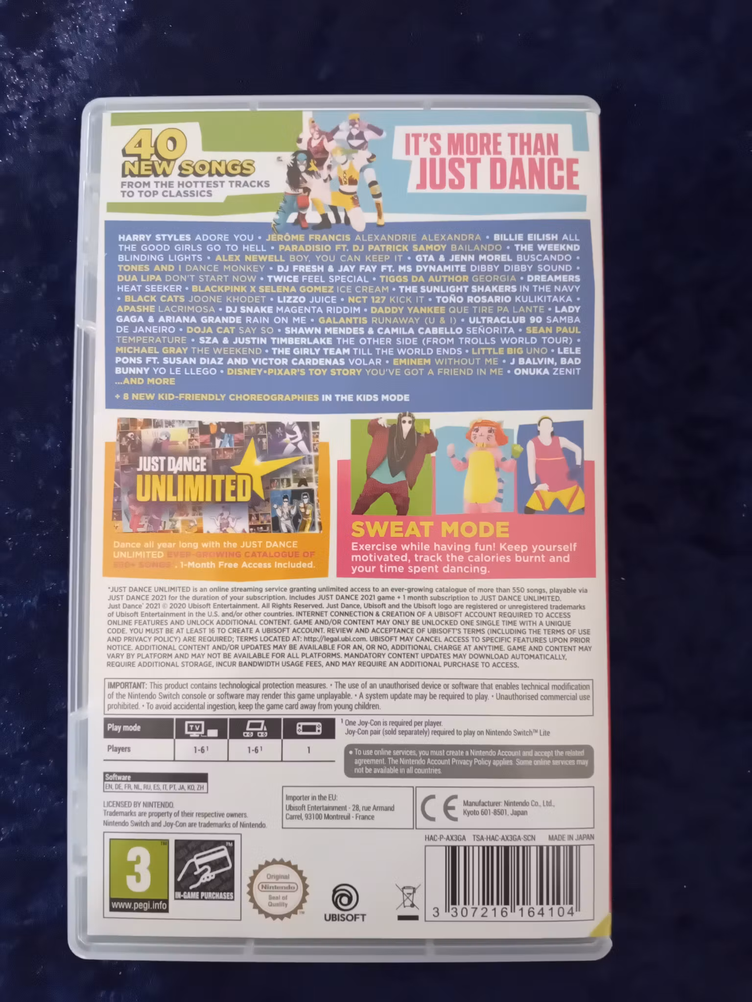• 🌍 Just Dance Unlimited‑trial – ett gratis 30‑dagarstillägg ingår som ger tillgång till över 600 låtar för ännu fler dansstunder (kräver internet och Ubisoft‑konto).