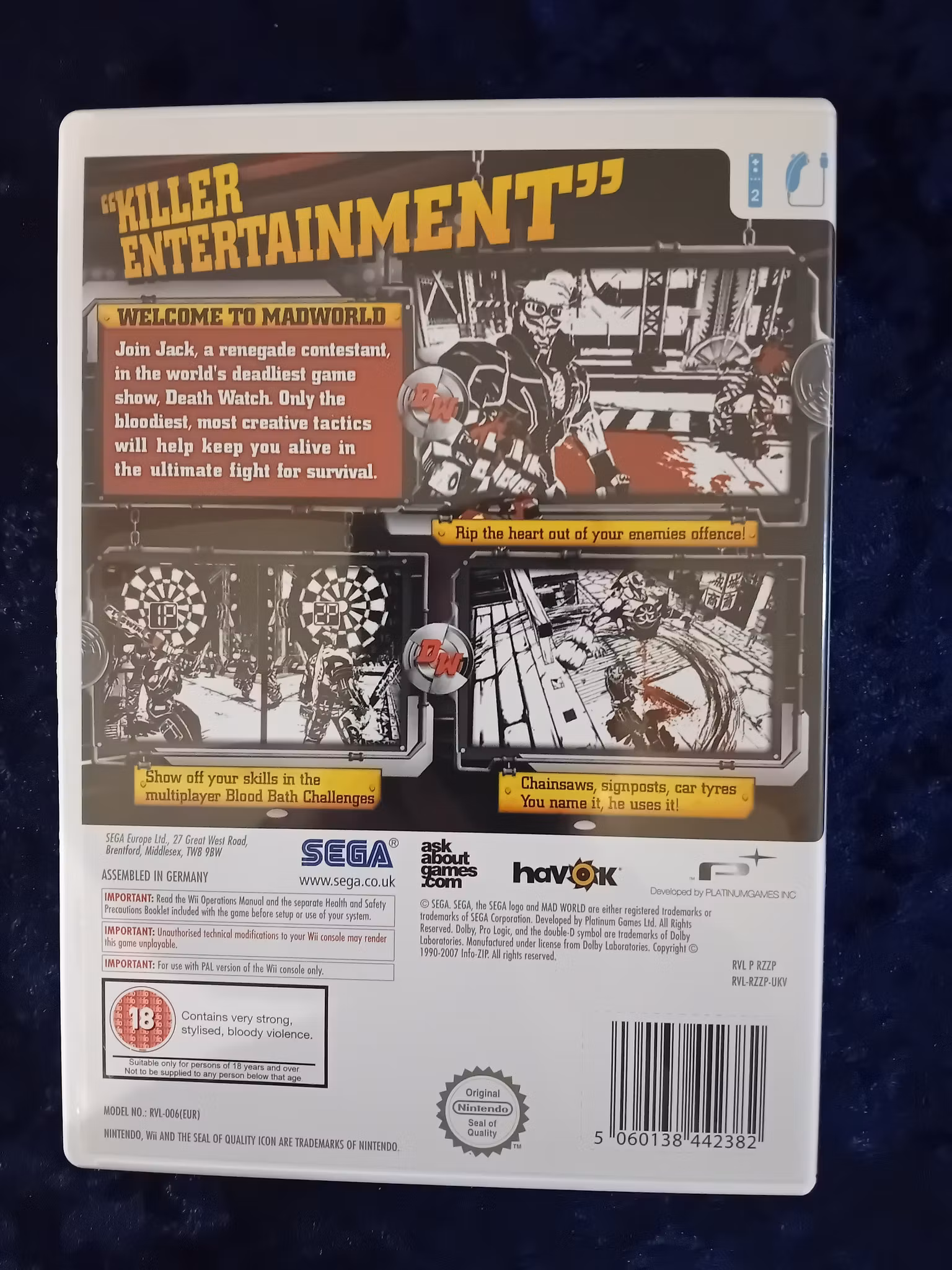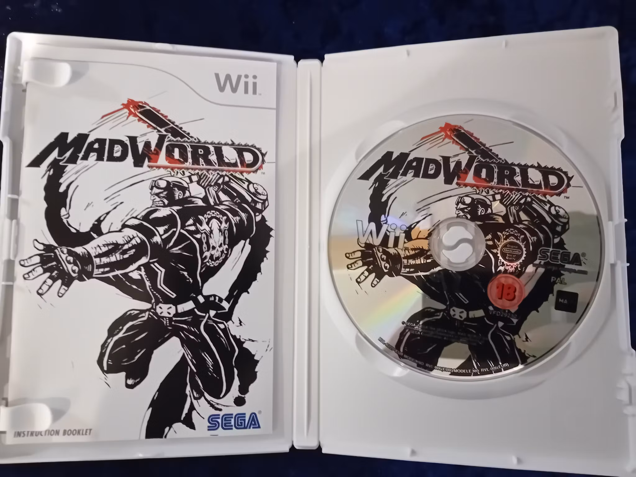 🩸⚡ Kliv in i en galen och våldsam värld med MadWorld – ett stiliserat, svartvitt actionspel på Wii! 🎮🖤