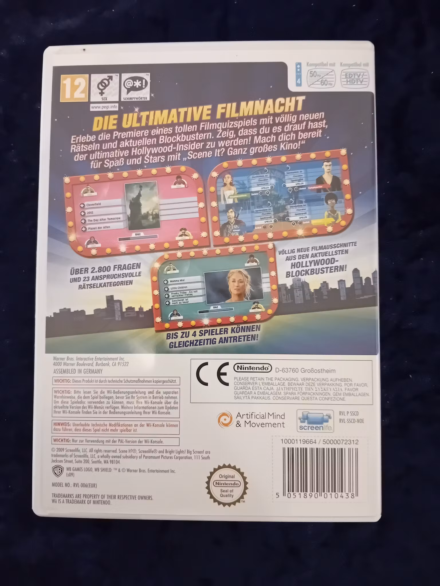 Gör dig redo för en fartfylld kväll fylld av filmkunskap, skratt och tävlingsanda! Scene It? Ganz großes Kino! tar den populära frågesportserien till Nintendo Wii och låter dig och dina vänner tävla i allt som rör filmens magiska värld.