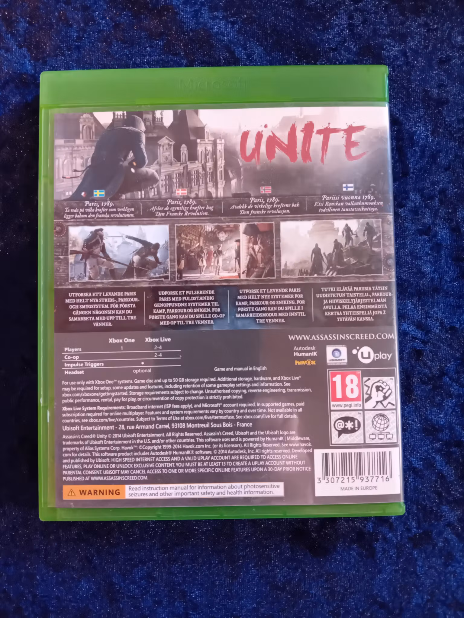 Assassin's Creed Unity är ett actionäventyr som utspelar sig under Franska revolutionen i Paris. Du spelar som Arno Dorian, en ung man som går med i lönnmördarnas orden för att avslöja konspirationer och hämnas orättvisor i en stad som står på randen till kaos.